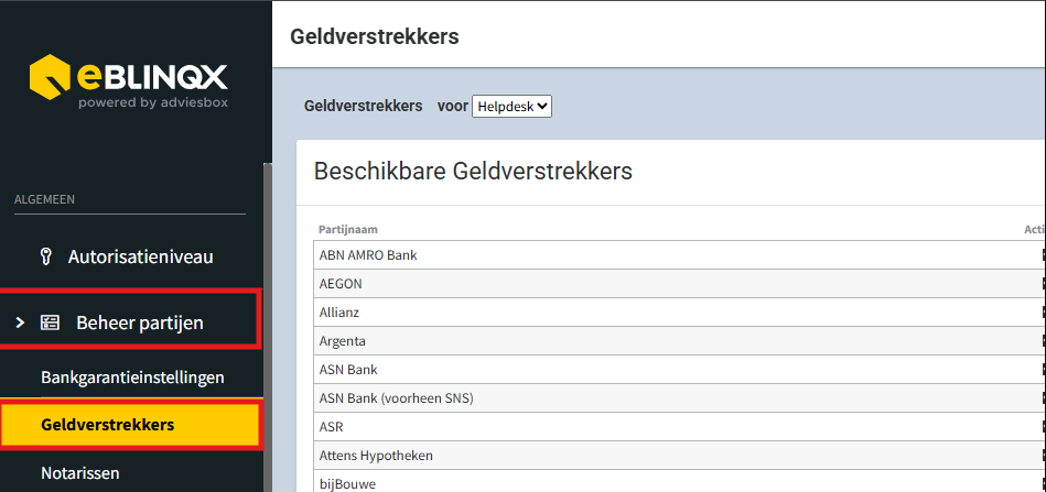 Klik vervolgens op Geldverstrekkers om de lijst met beschikbare geldverstrekkers te openen.