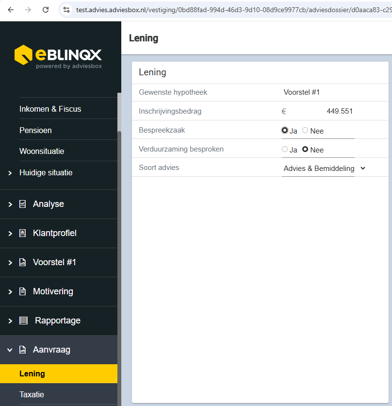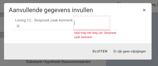 Wanneer je een aanvraag bespreekt met een geldverstrekker kan er een bespreekzaaknummer worden afgegeven. Dit nummer moet je registreren in Adviesbox Online, zodat de aanvraag correct wordt verwerkt. Geldverstrekkers die met bespreekzaaknummers werken zijn onder andere Rabobank en ING.