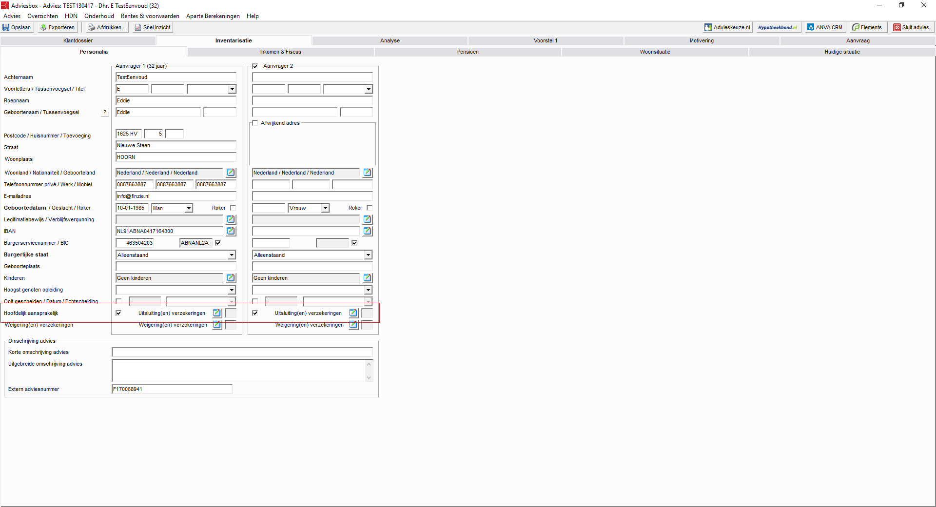 Je moet beide aanvragers invoeren om het adviesrapport op orde te hebben.