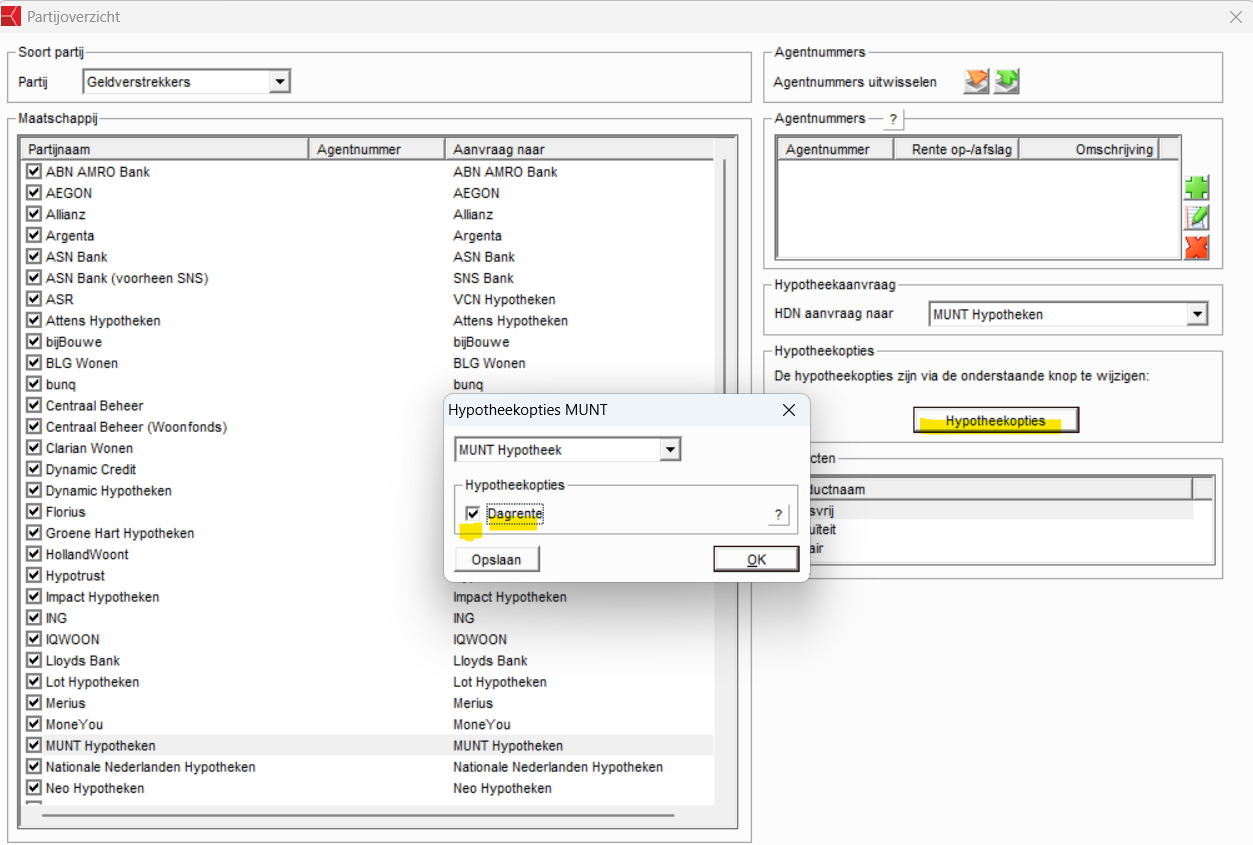 Ook kan het aangeklikt (en gecontroleerd!) worden in het vakje hypotheekopties in het voorstel: