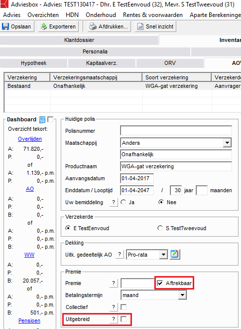 'Aftrekbaar' staat nu uit. Daardoor wordt de uitkering gezien als netto en wordt