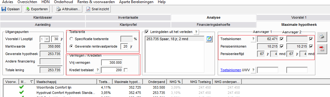 sneltoets gerekend met 30 jaar, terwijl in de praktijk de geadviseerde leningdelen