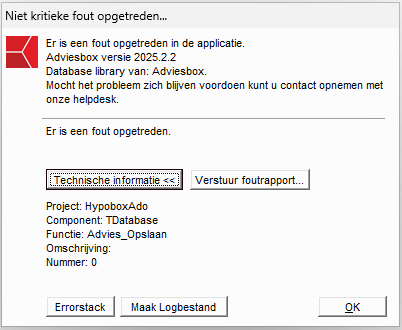 Deze melding betekent dat er een fout is opgetreden bij de communicatie met de Adviezendatabase van Adviesbox.