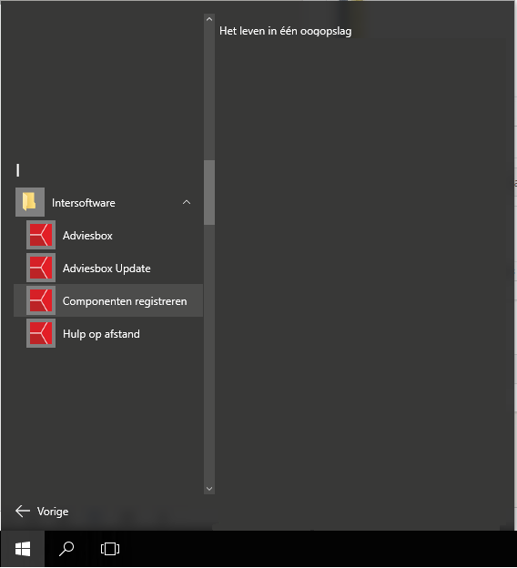 3. Navigeer in Windows naar “Start > Alle apps > Intersoftware” en selecteer hier de optie “Componenten registreren”.