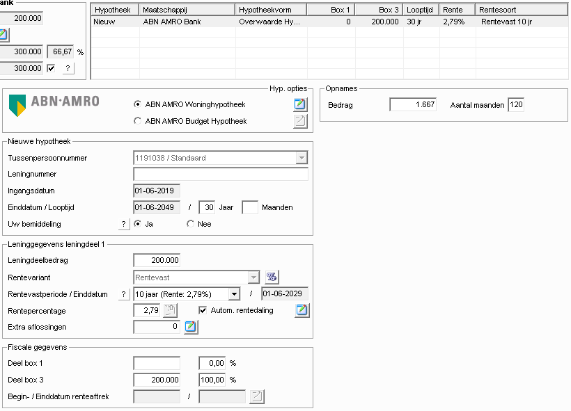 - Voer de huidige hypotheek in op tabblad Inventarisatie - Huidige situatie - Hypotheek