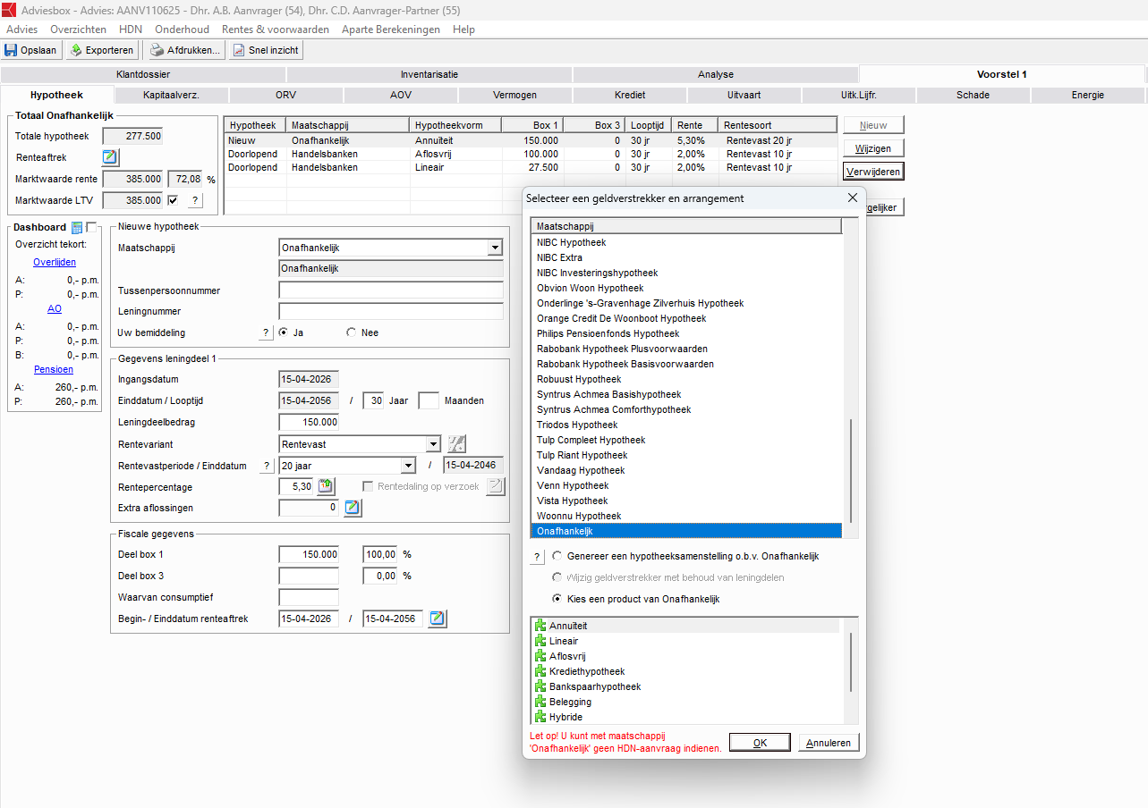 Je kunt in het voorstel kiezen voor 'onafhankelijk' en handmatig de juiste rente invoeren.