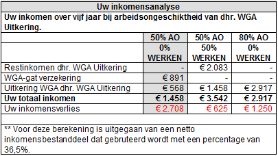 Bij bijvoorbeeld 50% arbeidsongeschiktheidsscenario